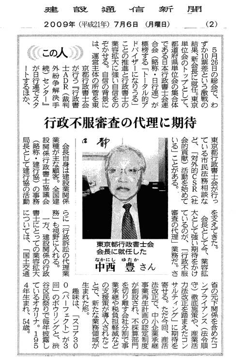中西会長のインタビュー記事が「建設通信新聞」と「建通新聞」に掲載されました。