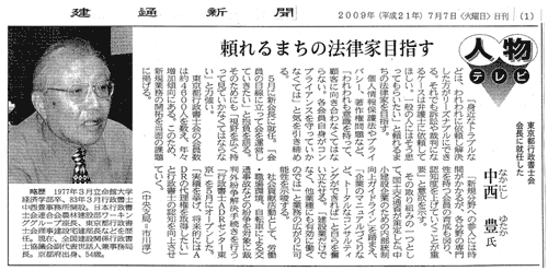 「建通新聞」2009年7月7日1面(記事クリックで拡大します)